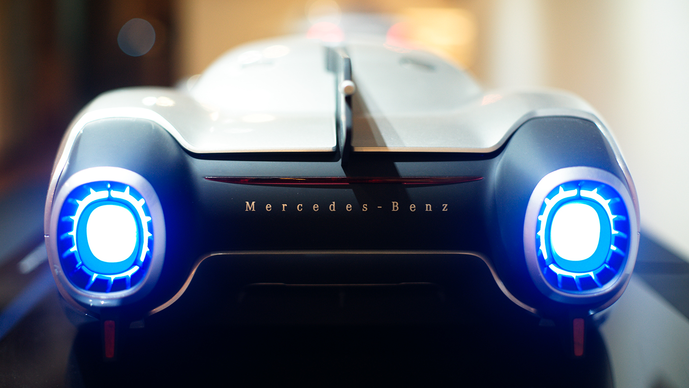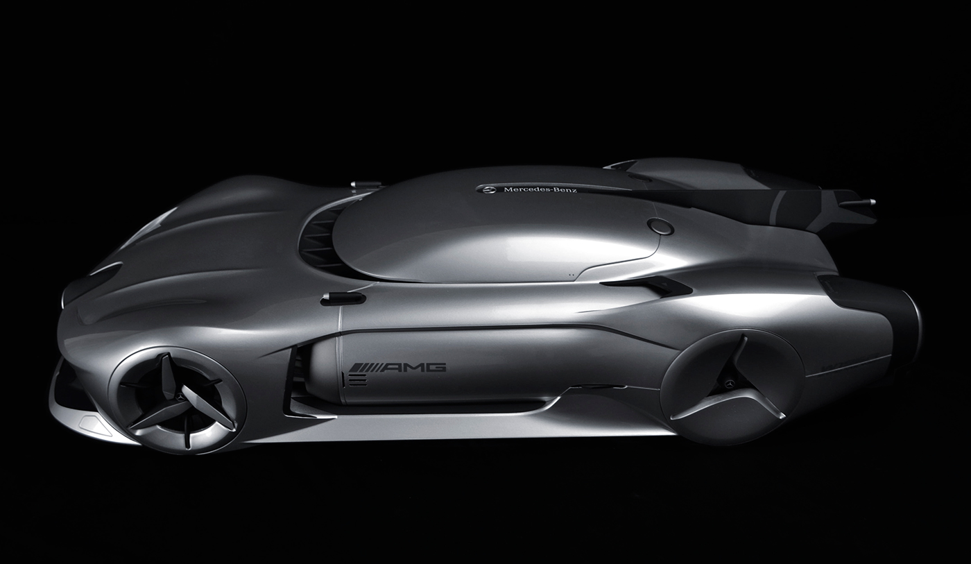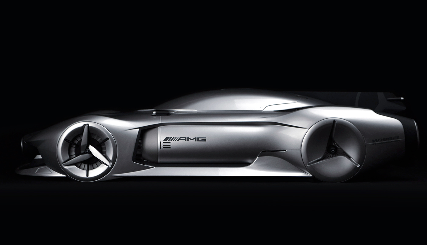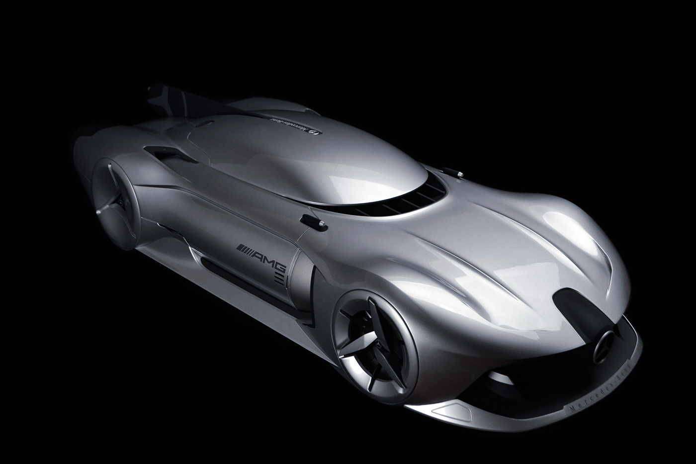 Other key design touches of the 2040 W196R Streamliner include the bulging jet engines at the rear, the enclosed rear wheels and as with any great Mercedes, a huge three-pointed star badge on the front grille.
