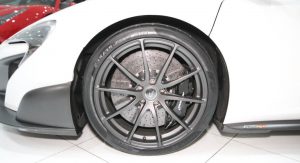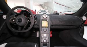 Most significantly, this 675LT has been outfitted with a host of custom touches from McLaren Special Operations. That includes the MSO carbon fiber roof scoop, carbon air vents on the front wheel arches and a black stripe running down its center.