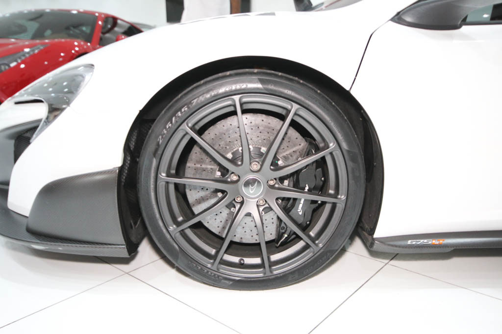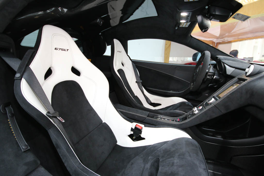 Most significantly, this 675LT has been outfitted with a host of custom touches from McLaren Special Operations. That includes the MSO carbon fiber roof scoop, carbon air vents on the front wheel arches and a black stripe running down its center.