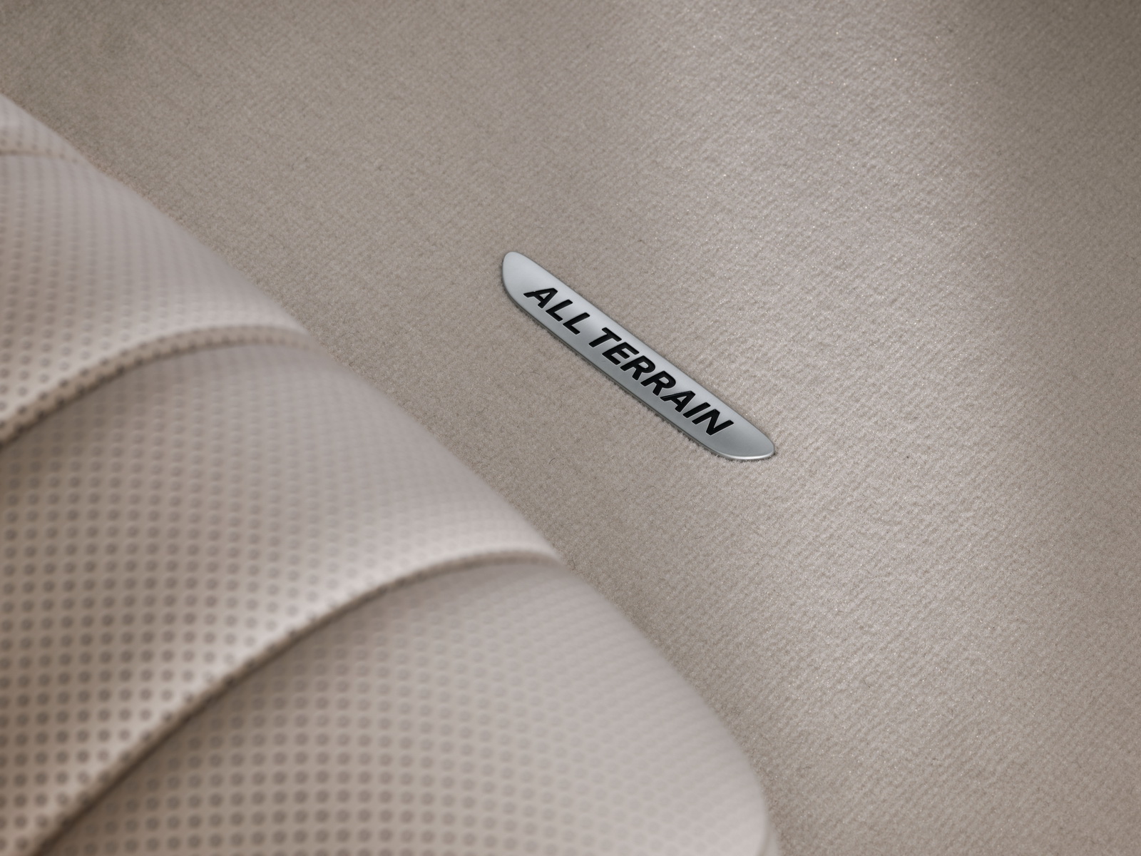 When the All-Terrain mode is enabled, the standard air suspension lifts the body by 20mm and up to speeds of 35km/h (21 mph) and the ESP, active yaw control and the ASR are tuned accordingly. The driver has also access to information like steering angle, vehicle level, the angle of slope and angle of the inclination, the accelerator/brake position and a compass.