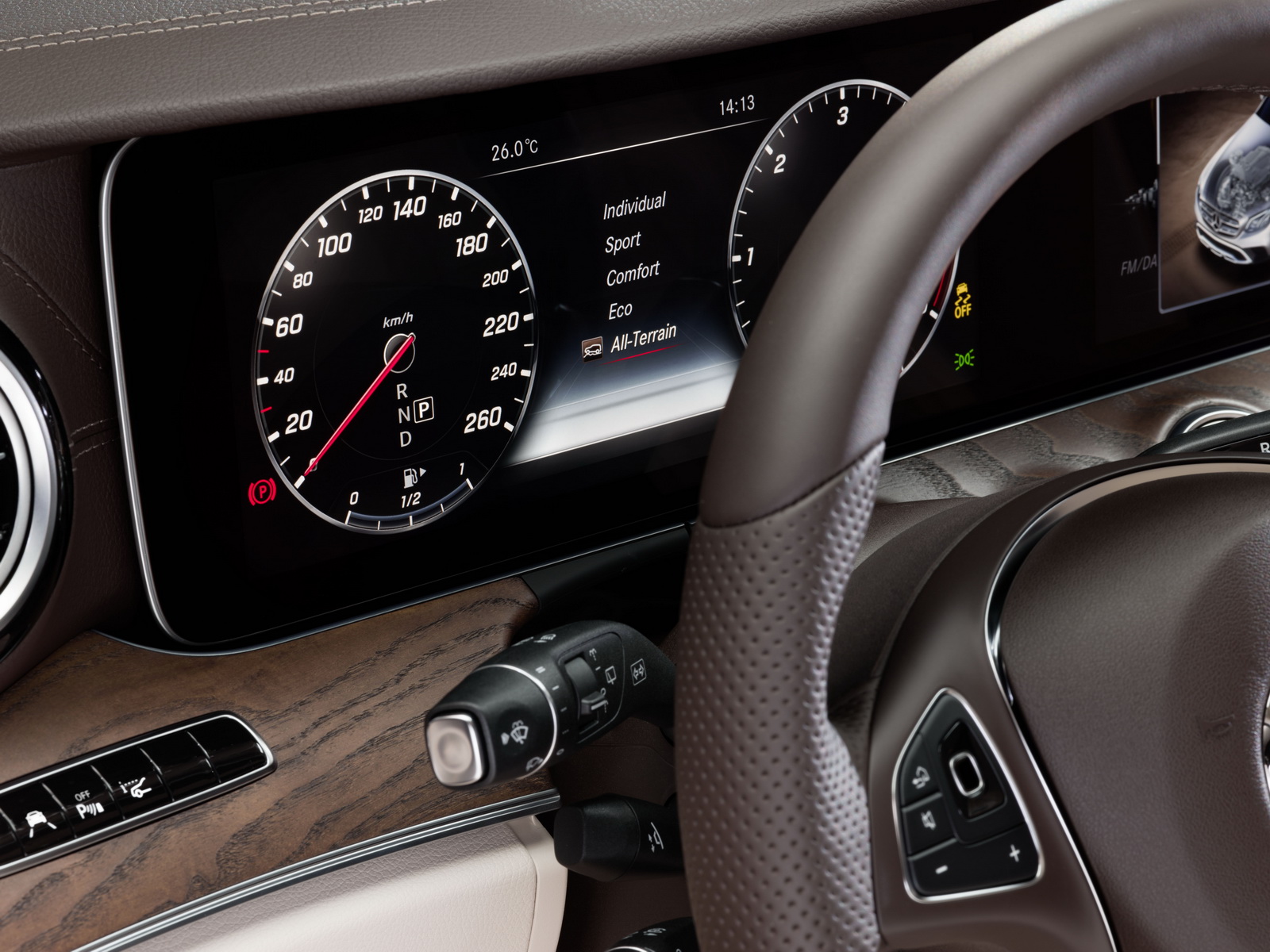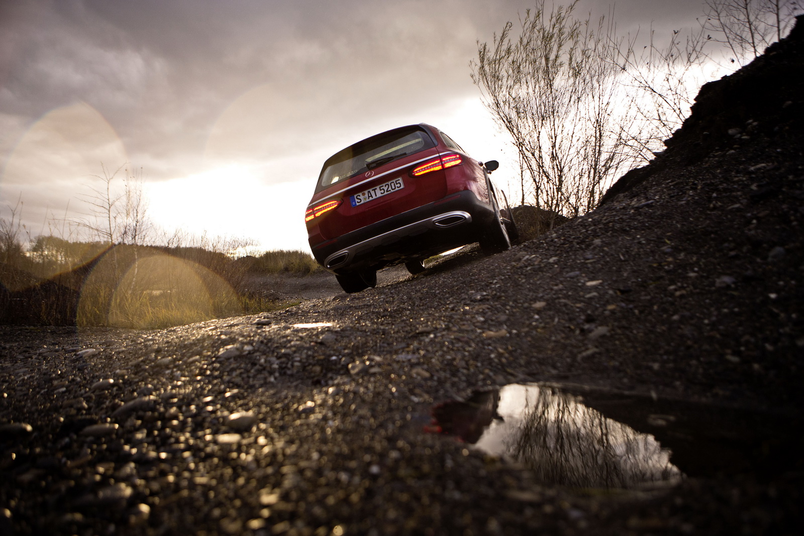 The new E-Class All-Terrain comes with the brand’s 4Matic all-wheel drive as standard and a 29mm higher ground clearance when in Normal driving mode (15mm from the air suspension + 14mm from the bigger wheels/tires), with owners able to choose between five transmission modes, including a model-specific All-Terrain function which tunes the chassis and powertrain for off-road driving.