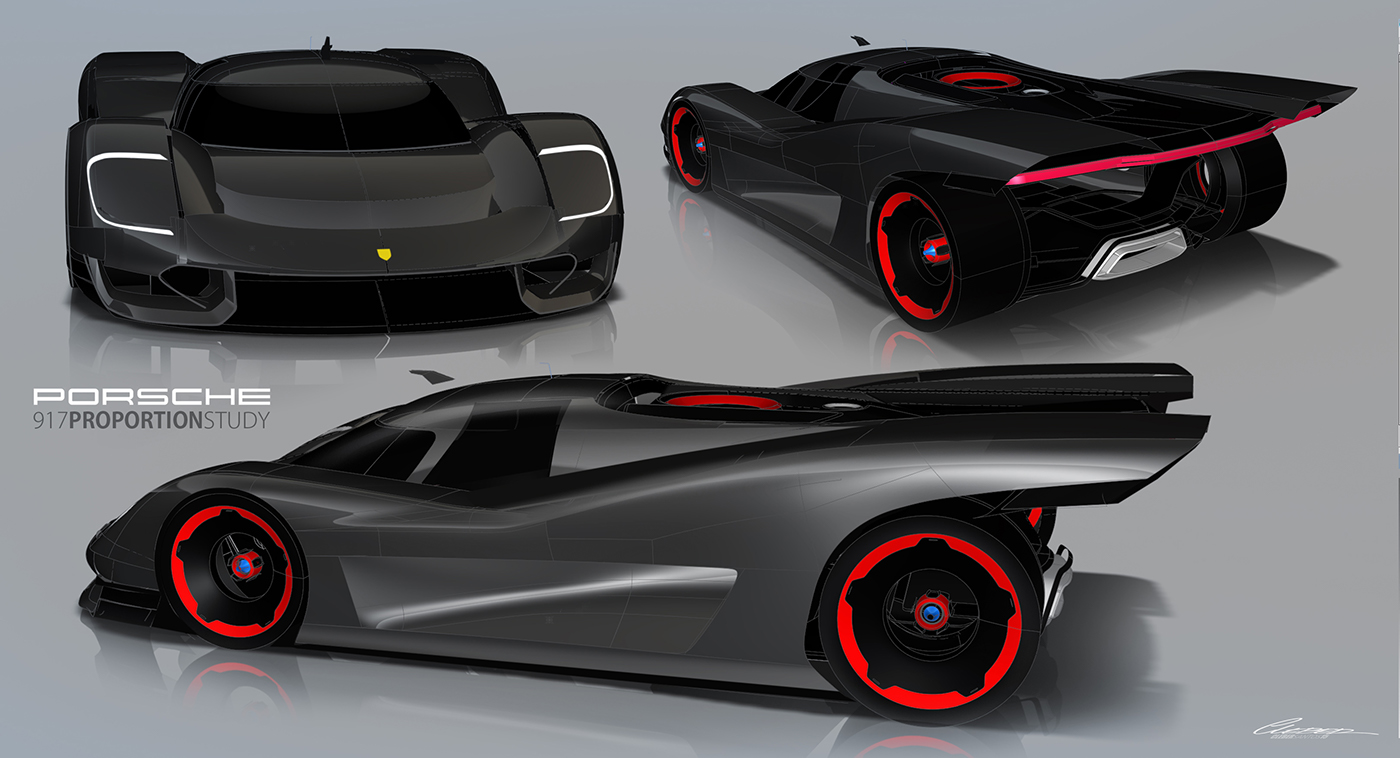 As for the second and third designs, they mimic the 917 very closely but add touches like new body lines and air intakes, a reshaped windshield and different headlights.