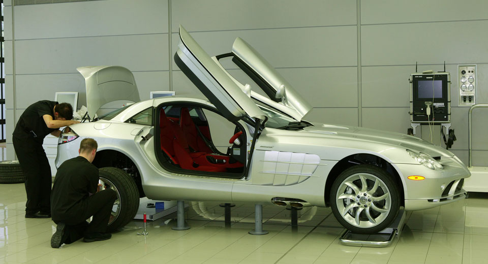 Before Mercedes moved its flagship gradually downmarket with the SLS and the AMG GT, it offered the SLR – a suitably exotic supercar that tangled with the Ferrari Enzo and Porsche Carrera GT in the mid-2000s. But where its successors have been built in Sindelfingen, the SLR wasn’t made in Germany at all: it was built in Woking, England, at the McLaren Technology Center. Mercedes owned 40 percent of McLaren at the time and had a longstanding partnership with the Formula One team, and though McLaren is keen to put that era behind it, the SLR was the second road car it ever made – following the legendary McLaren F1 and preceding the 12C that launched McLaren Automotive.
