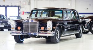 Weighing in at a massive 7,350 pounds even in shorter wheelbase, it was considerably heavier even than today’s extended-wheelbase Rolls-Royce Phantom. So Mercedes developed a 6.3-liter V8 good for 245 horsepower to help it along, an air suspension to keep it riding smooth, and a high-pressure hydraulic system to make it all manageable.