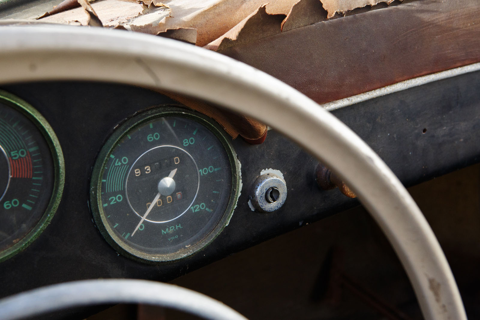The car was delivered new to a customer in LA, who put it in storage for over a decade. The subsequent owner left it unrestored to ward off potential thieves, eventually putting it back in storage for another quarter-century. Its current owner bought the Speedster at the turn of the millennium, then put it (yup) back in storage again until earlier this year.
