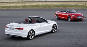 As for the more potent S5 Cabriolet, this uses a re-engineered 3.0-liter TFSI V6 to produce 354 horsepower and 369 pound-feet (500 Nm) of torque and is capable of reaching 60 mph (96 km/h) from a standstill in 4.8 seconds. The current range-topper is also equipped with AWD, but instead of a dual-clutch transmission, it makes do with an 8-speed Tiptronic.