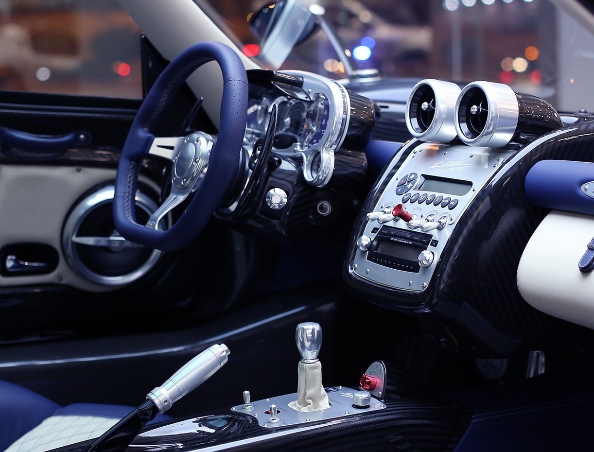 Inside, it is bathed in gloss carbon fiber, aluminium and white and blue leather and is surely one of the most beautiful cabins ever designed.