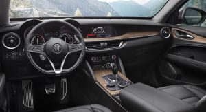 Power come from the standard 2.0-liter turbo four, sending its 280 horsepower and 306 lb-ft of torque through an eight-speed automatic transmission to all four wheels. While not as potent as the 2.9-liter twin-turbo V6 in the Quadrifoglio performance model, it’s still enough to send the Stelvio jumping off the line to 62 miles per hour in 5.7 seconds – figures which the Italian automaker terms as “best in class.”