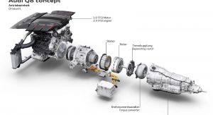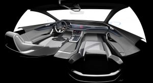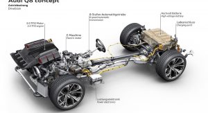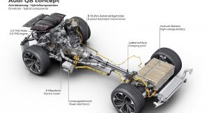 Created as a showpiece for what the brand stands for, Audi has fitted it with a plug-in hybrid powertrain that mates a 3.0-liter turbocharged V6 with a supplemental electric motor and eight-speed automatic transmission. The combined effect is 442 horsepower and 516 lb-ft of torque – enough, in other words, to propel the big crossover from a standstill to 62 miles per hour in 5.4 seconds and on to the customary limited top speed of 155 mph.