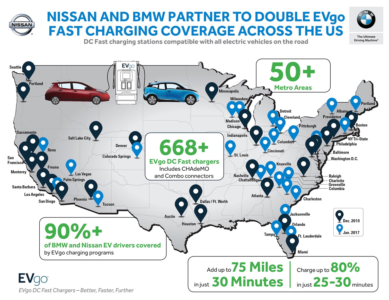 BMW and Nissan have joined forces with the largest public DC Fast charging network in the U.S., EVgo.