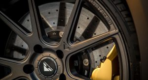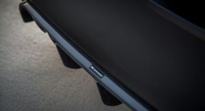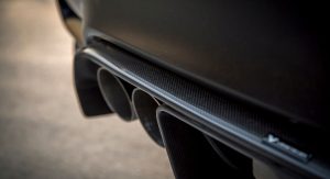 This example, however, has been outfitted by Vorsteiner with its own set of V-FF 106 wheels. Made of carbon graphite, they measure the same 19 x 9.5 inches at the front and 19 x 10.5 inches at the rear as the stock set. But these do without the orange trim that the factory fits to match the front lip spoiler, complementing the matte black body finish for an even more sinister look.