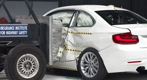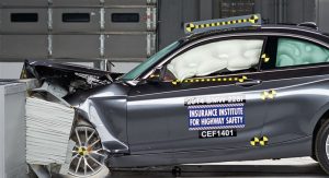 Joining the 2017 BMW 3-Series on the test banks was the 2-Series Coupe, another Top Safety Pick+ winner. As with its larger sibling, BMW’s smallest coupe earned ‘Good’ ratings in the small overlap, moderate overlap, side, roof strength and head restraints, and its optional front crash prevention system was noted as ‘Advanced’. The optional curve-adaptive, high-intensity discharge lights were rated ‘Good’, and so were the child seat anchors.