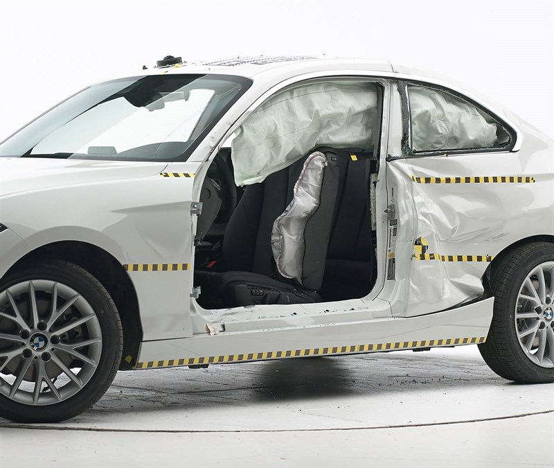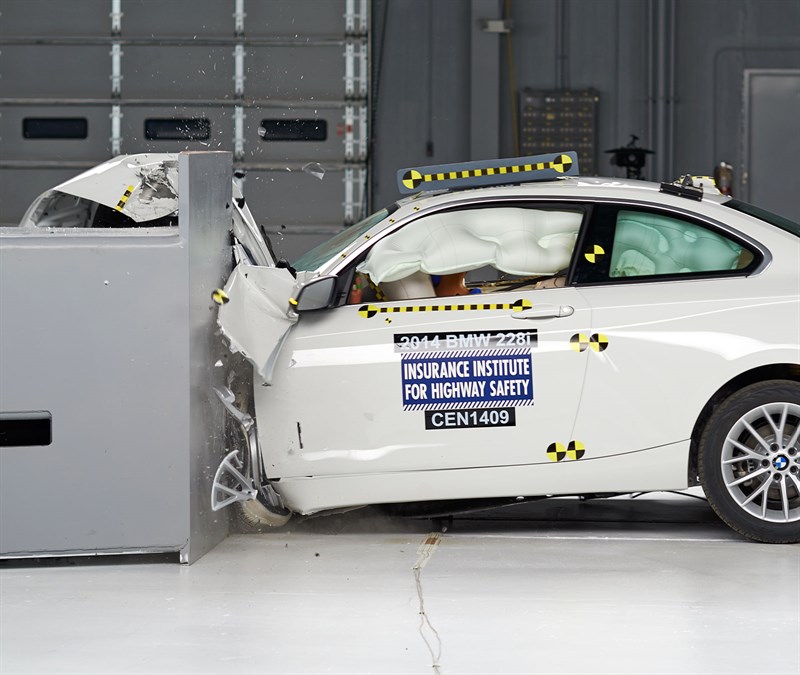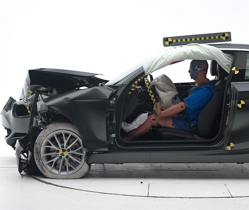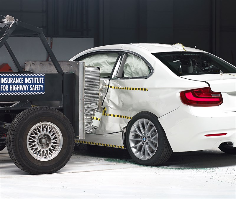 Joining the 2017 BMW 3-Series on the test banks was the 2-Series Coupe, another Top Safety Pick+ winner. As with its larger sibling, BMW’s smallest coupe earned ‘Good’ ratings in the small overlap, moderate overlap, side, roof strength and head restraints, and its optional front crash prevention system was noted as ‘Advanced’. The optional curve-adaptive, high-intensity discharge lights were rated ‘Good’, and so were the child seat anchors.