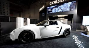 Twelve months after it was announced that the 2017 Ford GT would use a Gorilla Glass windshield, Corning has presented a concept car at CES bathed in its strengthened glass.