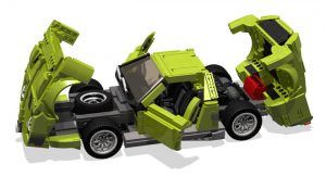 A project into which its creator invested countless hours and is made out of 1,243 parts. Most of these went towards creating those tricky exterior lines, but the model also features openable doors, a V12 engine replica with a toolbox behind it, a spare wheel at the front and a full interior.