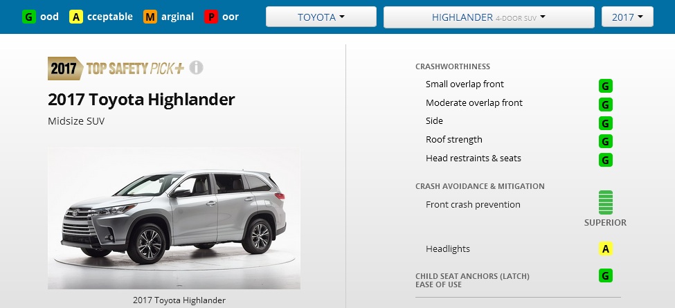 By qualifying for IIHS’ top award, the Highlander has joined other TSP+ Toyota vehicles, including the Prius, Prius V, Corolla, Camry, RAV4, Lexus RC, NX, RX and ES 350.