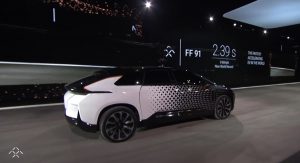 Although the vehicle presented at CES isn’t the finished production car, reservations for the FF 91 have already been opened at the company’s website, requiring a $5,000 refundable deposit. The first 300 units produced will be the limited-run FF 91 Alliance Edition. A portion of the sale proceeds for each Alliance Edition will be donated to an environmental fund.