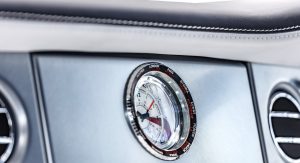 Its maritime theme is continued inside, where the automaker added two clocks, in tone with the classic ship radio clocks. Both are housed within a grooved bezel with 24 time zones, allowing owners to rotate them in either direction, depending on what part of the globe they are in. Another special touch is a hand-cut wake effect on the lambswool carpets, created by the brand’s craftspeople.