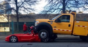 This incident took place earlier this week in midtown Atlanta, where a Ford truck owned by the city crashed into, and went over top of this fifth-generation Vette.
