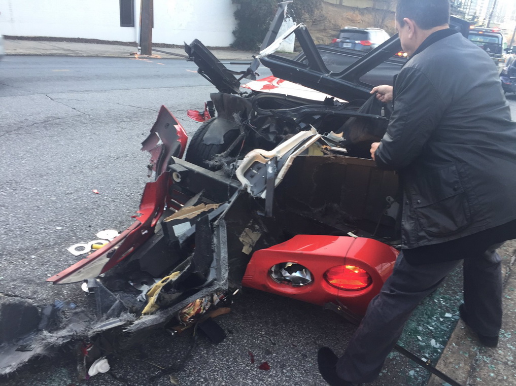 According to WSB-TV’s Linda Stouffer, the driver of the sports car was OK, although he did tell her about how he felt the truck roll into his car, which must have been a scary sight considering how low the Corvette is compared to that truck.