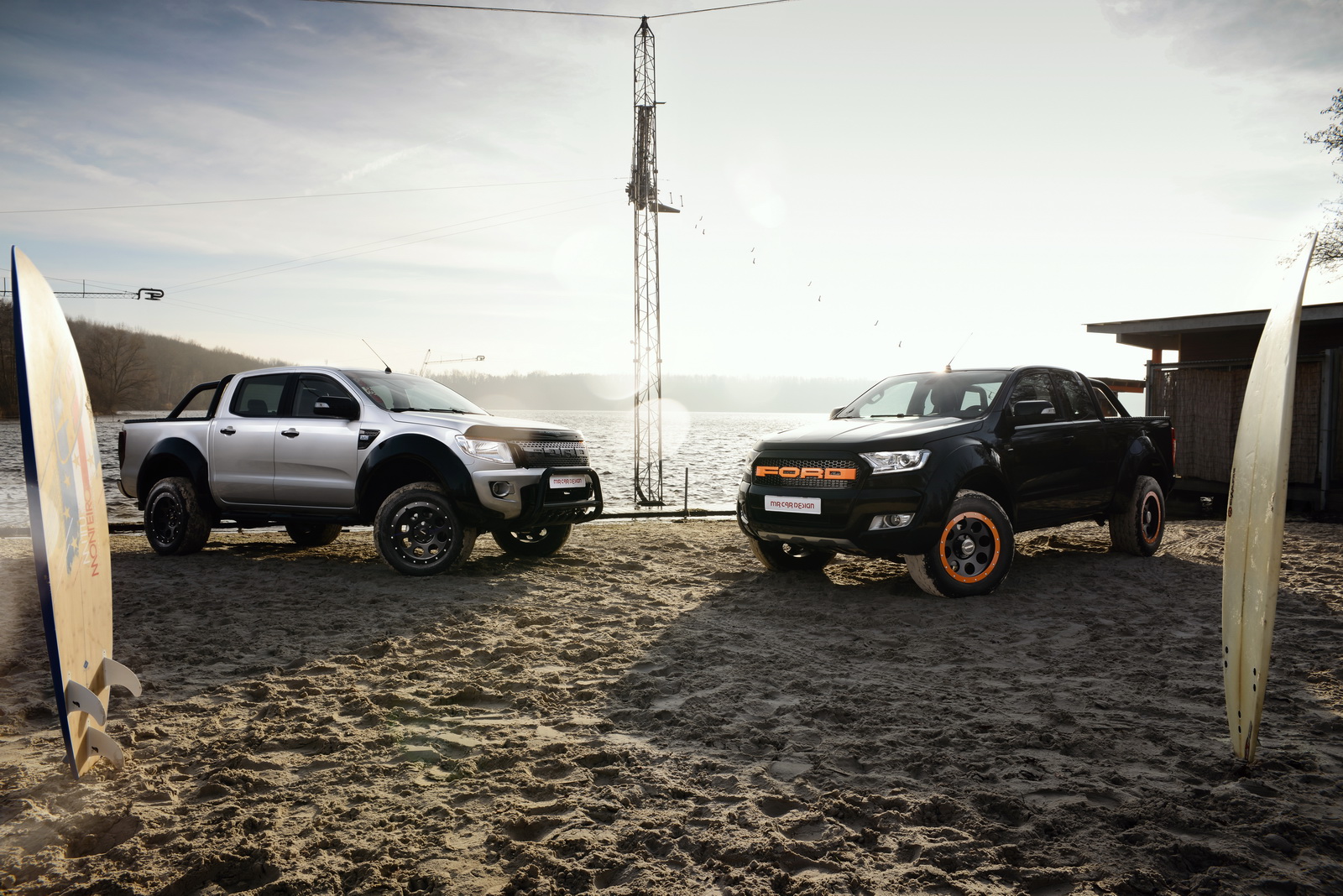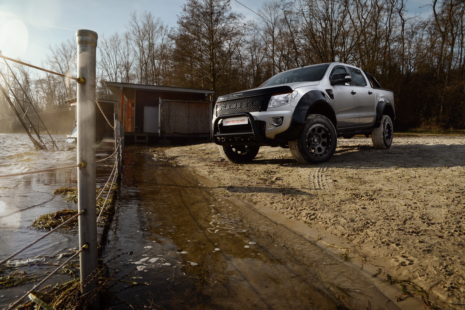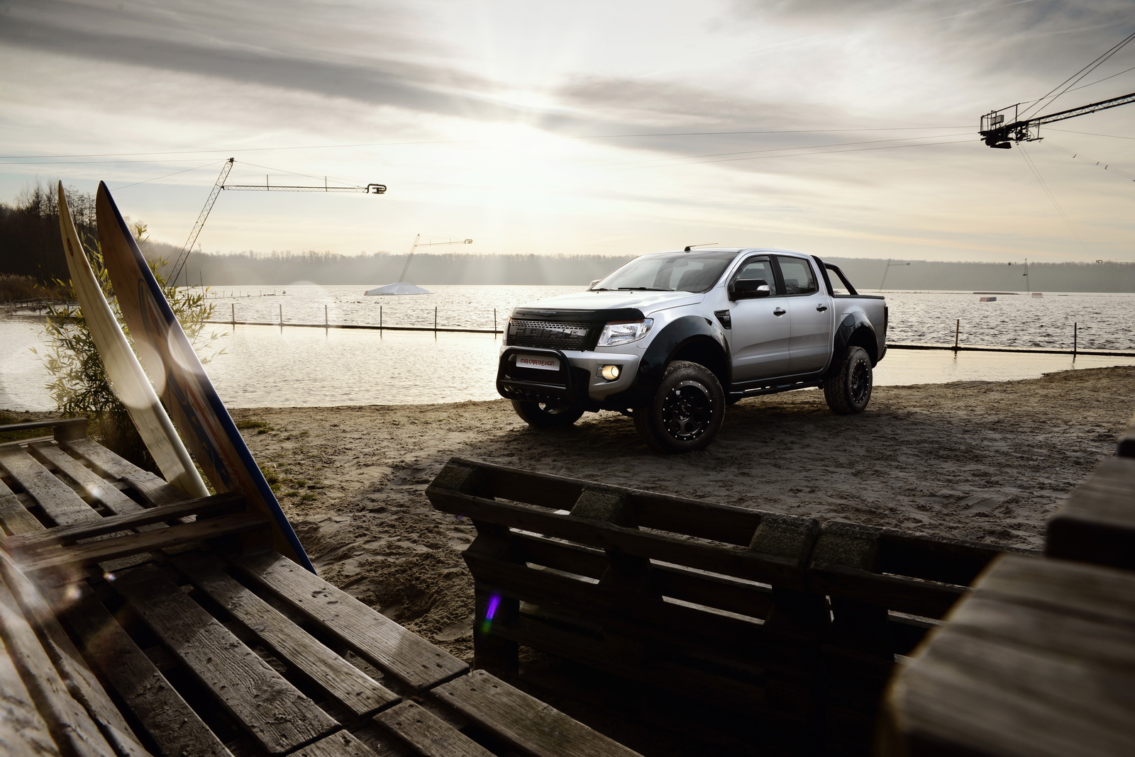 Pictured here is the latest European-market Ford Ranger, which was taken through a healthy training program by MR Car Design, and it came out looking all beefed up, with wider bumpers, 30 mm spacer discs mounted on all four corners, and a lift kit that raises ground height by 50mm.