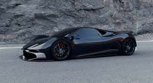 The rest of the car then adopts a low-slung and exceptionally sleek look, typical of a mid-engined supercar. It is also free of any obvious side or rear air intakes resulting in beautifully crisp and flowing lines without any ugly obstructions. At the rear, there is a taillight design reminiscent of the One-77, four exhaust pipes, an aggressive diffuser and a small air brake.