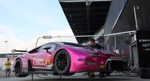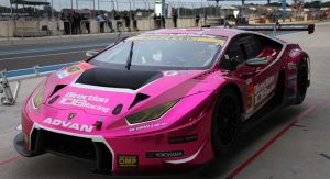 The Huracan GT3 in question competed in the Japanese Super GT championship last year and was run by Direction Racing with the support of Lamborghini’s official racing outfit, Squadra Corse. It is bright pink and about as insane as a Lamborghini can get. We want it.
