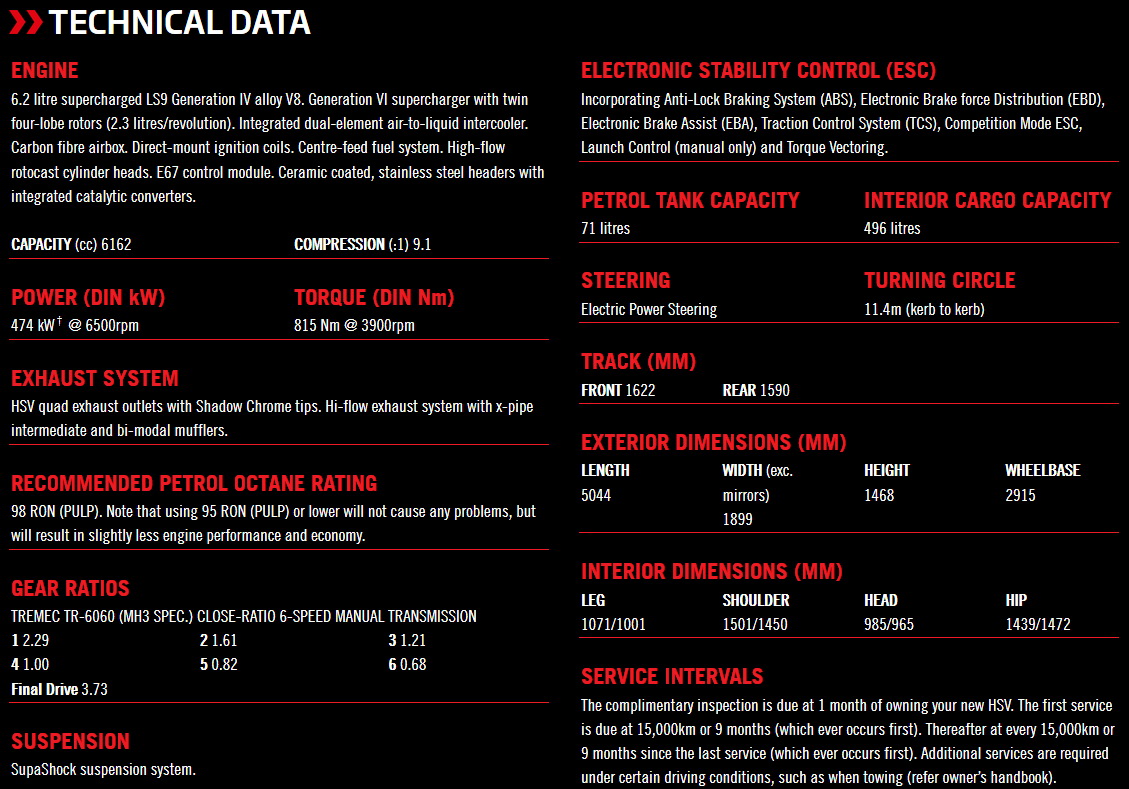 Other performance features include Magnetic Ride Control, ESC, Traction Control, Torque Vectoring and Launch Control (for the manual versions), while the interior benefits from a mixture of Alcantara and leather surfaces to “enhance the driver’s connection to the car.” HSV is asking $109,490 AUD ($82,900) for this one.