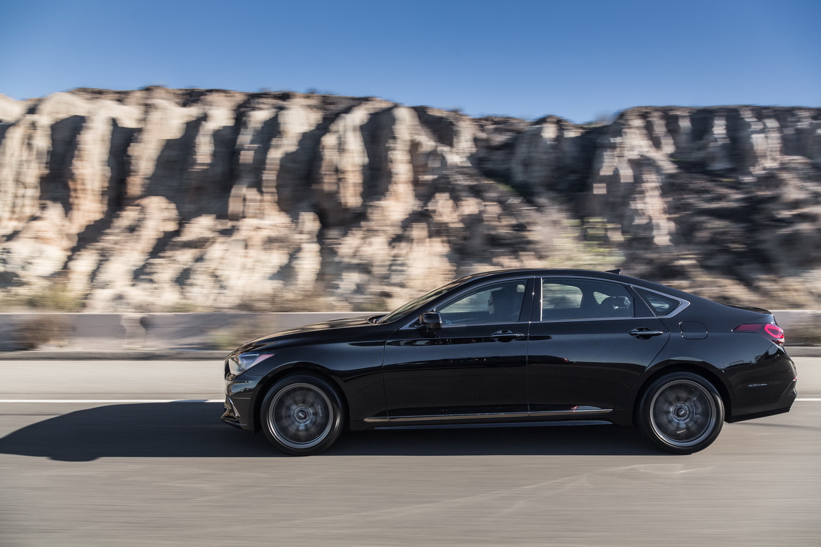 The most dynamic model Genesis made yet employs a twin-turbo 3.3-litre direct-injected V6 with 365hp and 376 lb-ft, paired to an eight-speed automatic gearbox.