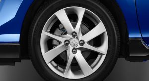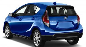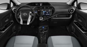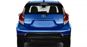 The revisions applied to the 2017 Toyota Prius C include some cosmetic updates – including a new front fascia, rear bumper, rocker panels, and rear spoiler (applied here to smooth the airflow more than providing downforce). Alloy wheels also come standard on all trim levels – measuring 15 inches as standard, with optional 16s. (The name of the game here is “low rolling resistance,” after all, not traction.)