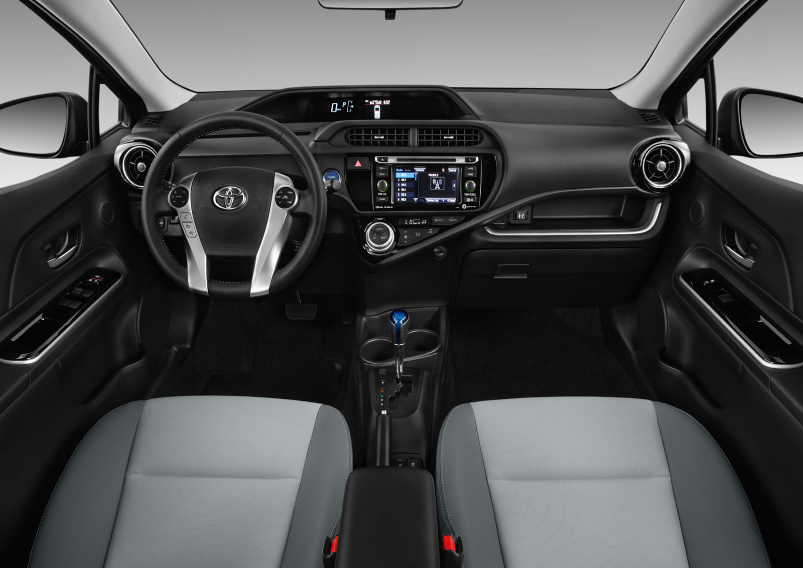 The revisions applied to the 2017 Toyota Prius C include some cosmetic updates – including a new front fascia, rear bumper, rocker panels, and rear spoiler (applied here to smooth the airflow more than providing downforce). Alloy wheels also come standard on all trim levels – measuring 15 inches as standard, with optional 16s. (The name of the game here is “low rolling resistance,” after all, not traction.)