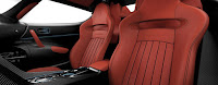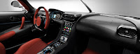 The interior is spec’d in lingonberry-red leather, with woven inserts and black top-stitching, as well as an anodized black center console and more carbon-fiber trim than a Mansory catalog.