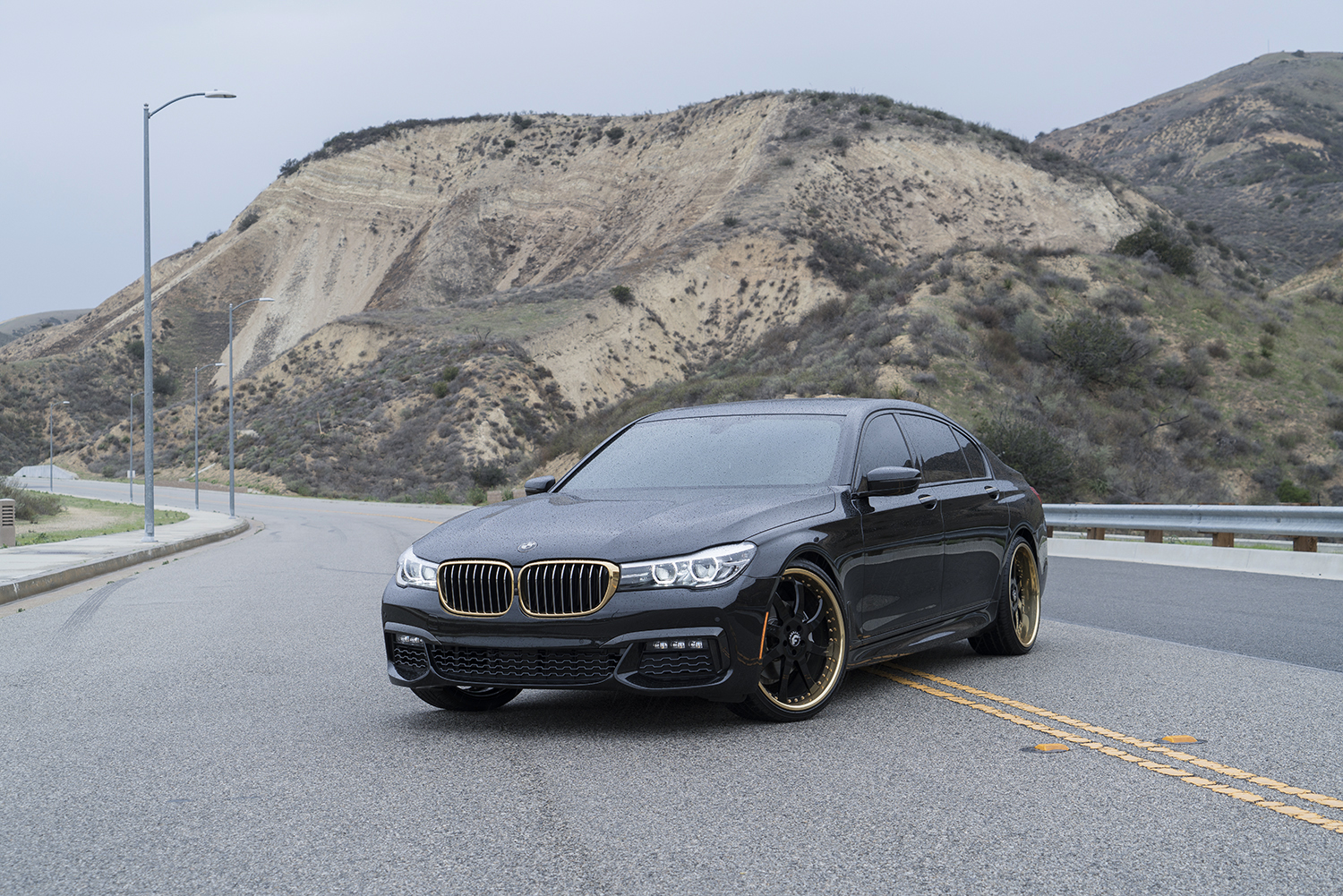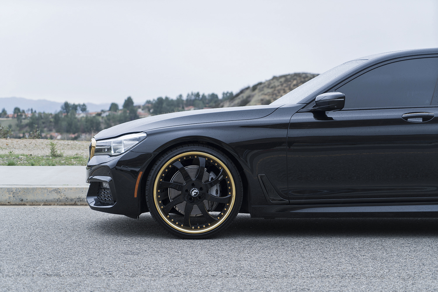 This black 7-Series is wearing Forgiato Quattresimo wheels, which we’ve mostly seen on crazy-looking low riders and large SUVs. The fact that this 7-Series Bimmer strapped them on makes for somewhat of a rare sighting.