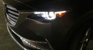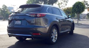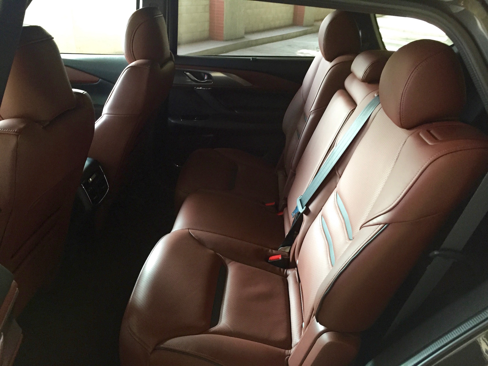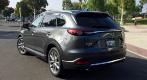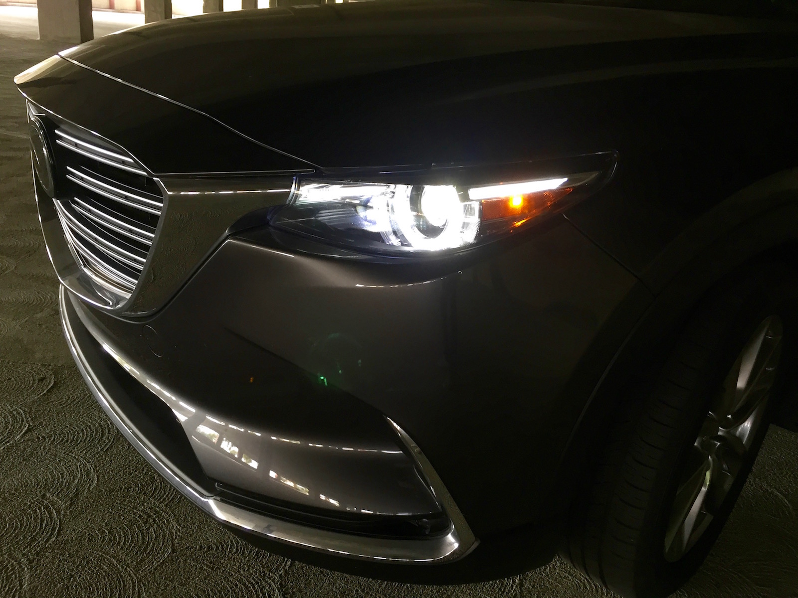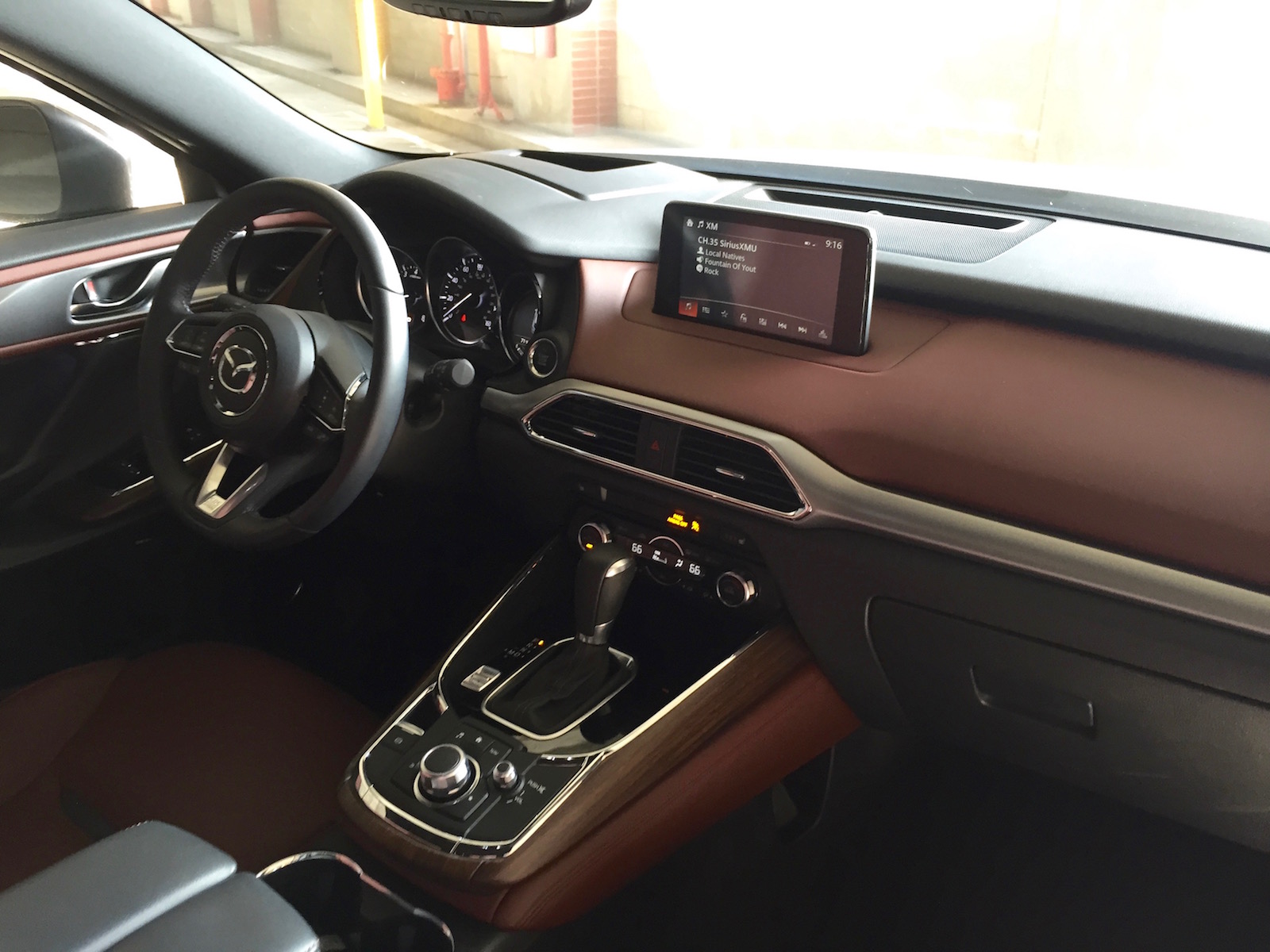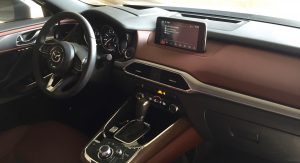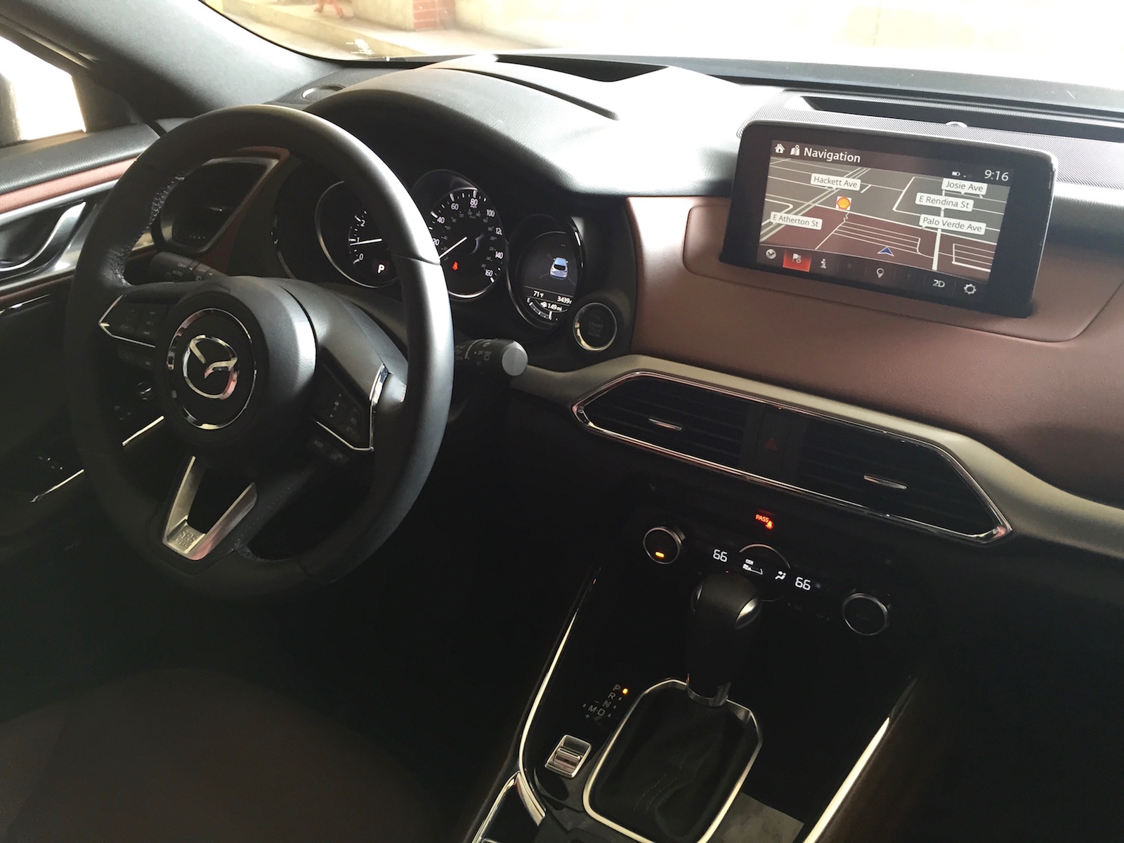 The exterior design cues are largely reminiscent of what’s been on all Mazdas since the first-generation CX-5 compact SUV bowed in 2012, although they’re inflated to 125 percent on the CX-9. Greater attention to detail on the top Signature model brings nicer finishes for the grille and wheels than on other recent Mazdas, which is also welcome.