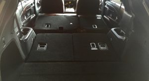 More frustrating is a lack of storage options. The center console opens to reveal a somewhat shallow bin that won’t fit much other than keys, and you end up using the cupholders for phones and things that aren’t cups. Parents who travel with a lot of stuff will find that folding at least half of the third-row seat down is a must for most large bags.