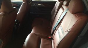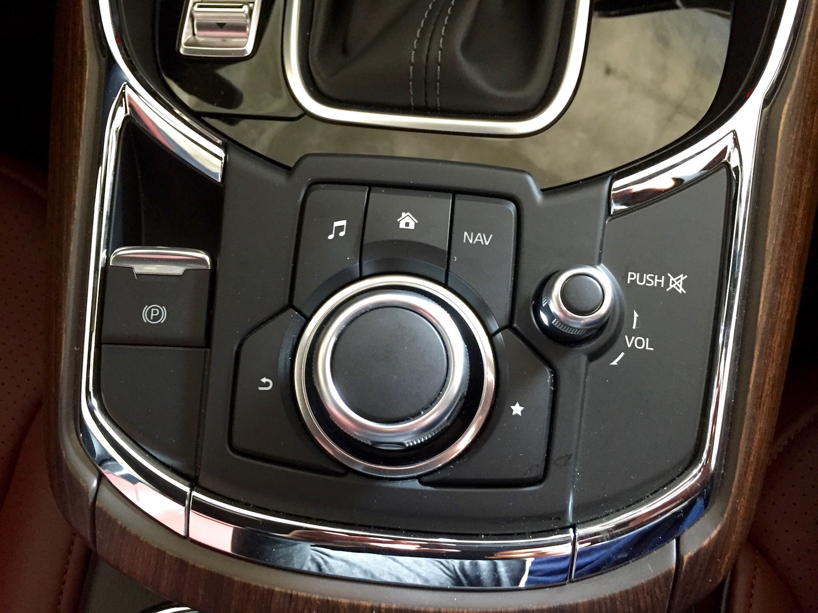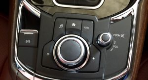 The attempts to class up the materials, a major talking point from Mazda since this generation CX-9 was first shown, is only partly successful. The feel is similar to that of the current 6 and CX-5, but there are nicer new details, such as a full color screen in one of the instrument panel gauges and more generous helpings of silver trim and quality leather. But the infotainment system still operates in a recalcitrant way and its graphics look more dated than ever. The hyped rosewood trim on the center console doesn’t look that authentic and it fails to brighten the interior much.