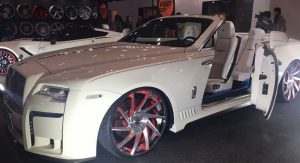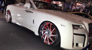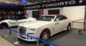 The tuned Black Bison Edition Rolls Royce Dawn also swapped Wald’s more understated, Illima 22-inch wheels for some red-accented, ‘hey, look at me!’ rims from Forgiato wrapped in super-low profile rubber.
