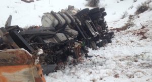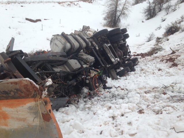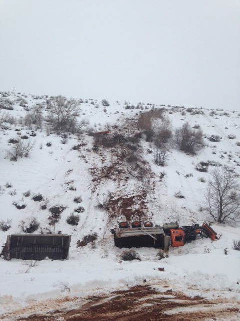 “The passenger side of the cab was completely smashed,” said South Area Supervisor Neil Lundell. “It was a violent ride he went off an embankment that was about 300 ft, if you know a 1-to-1 slope, that’s steep.”