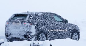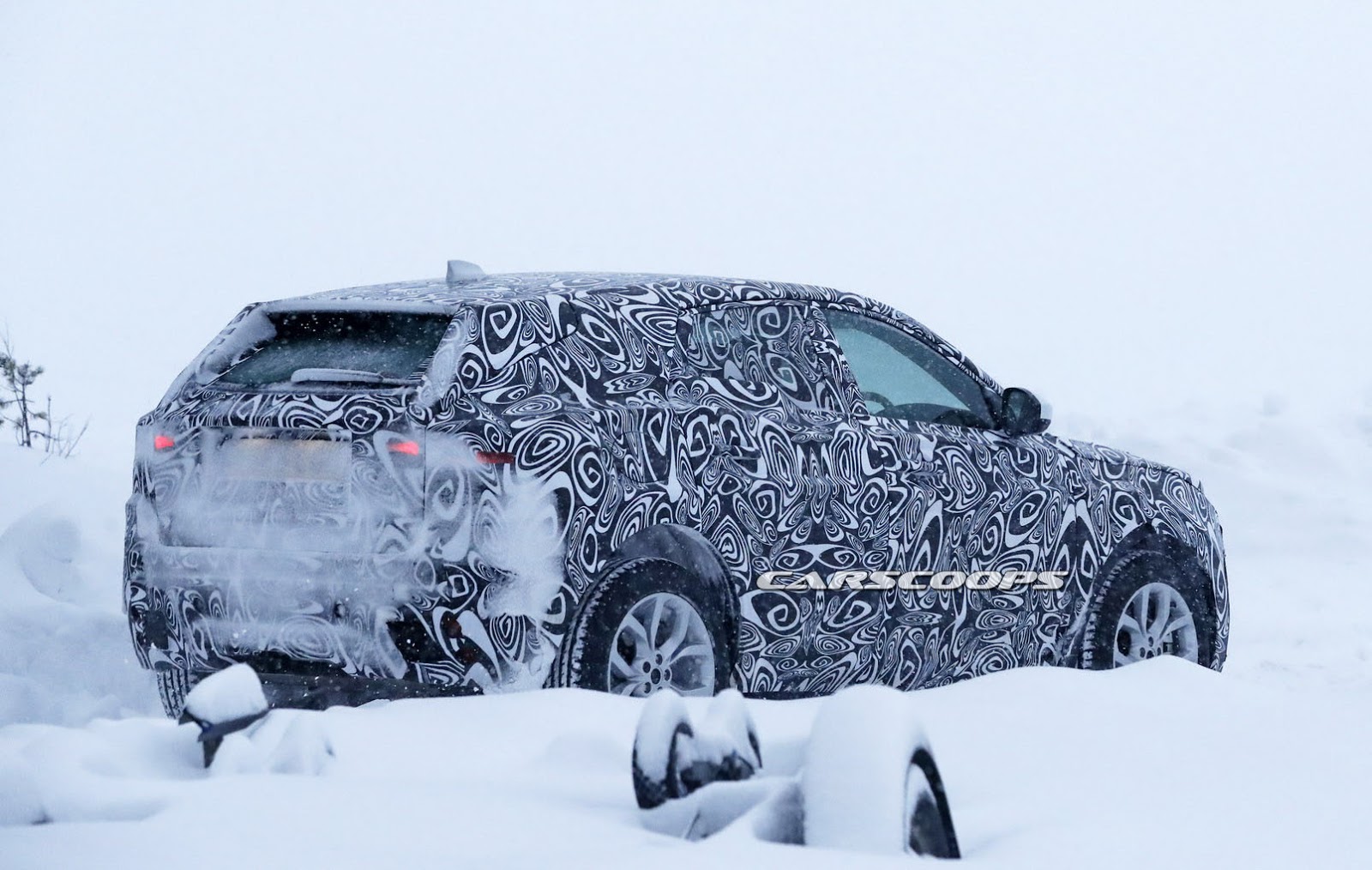 Though the swirly camouflage still hides design details from our prying eyes, this latest prototype appears to be wearing its own bodywork instead of the Evoque sheetmetal seen on previous test mules.