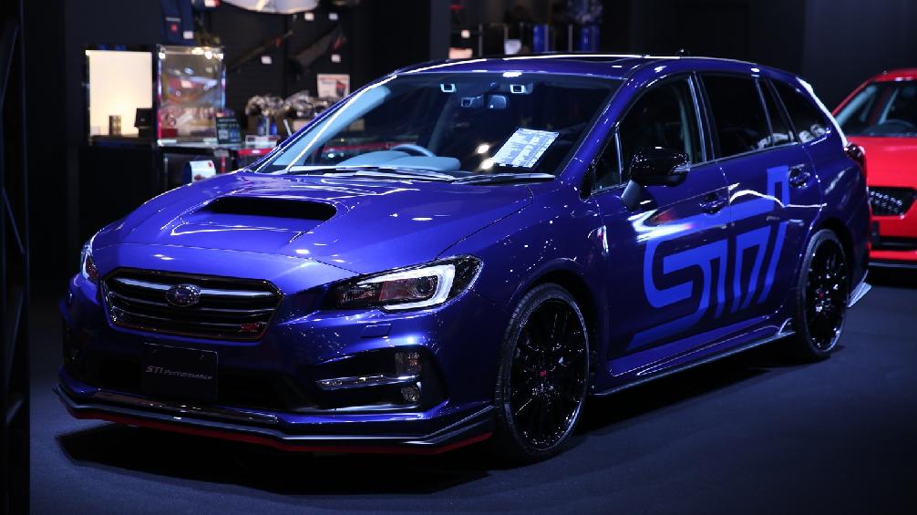 The compact estate model featured in Tokyo comes fitted with already available STI Performance components, including a sports exhaust and aero package, along with prototype Recaro front bucket seats.