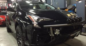 Now, part of me is saying I should mock it, but another part says it kind of looks interesting in a weird way – definitely more so than your run-of-the mill Prius. Feel free to tell me I’m wrong on not hating this jacked-up Toyota Prius, maybe I lack a taste in cars after all.