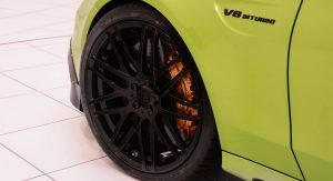As for its appearance, we’re talking a whole lot of lime green with black racing stripes running all the way from the bonnet, onto the roof and on the tailgate. The rear diffuser, spoiler, mirror covers and front spoiler are all carbon fiber, while every inscription on the car is now black – which makes sense since chrome doesn’t mix all that well with lime green.