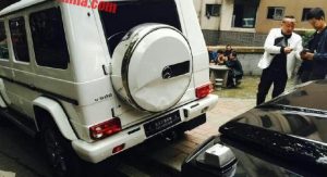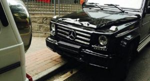 According to Carnewschina, the driver of a new 2017 white G500 got onto the pavement and drove into a pole, followed by the black G500 which for some reason ended up hitting the white one.