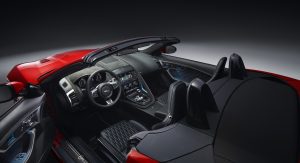 Jaguar has also included the new ReRun app with the car, which was co-developed with GoPro and combines the video from an action camera of the brand with key performance data real-time, including speed, throttle position, gear selection, braking force and g force. The cabin is also hosting a pair of new, lightweight slimline seats, new chrome and aluminum trims and revised interior color schemes, including a Sierra Tan leather option.