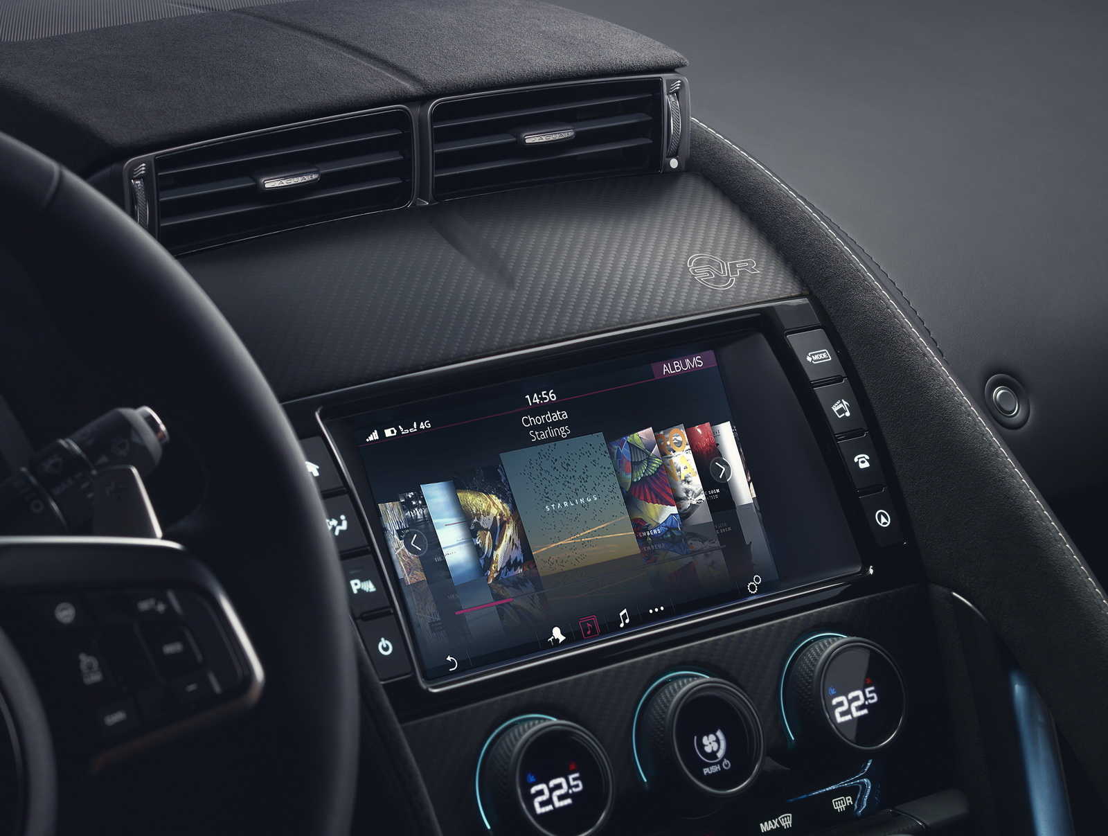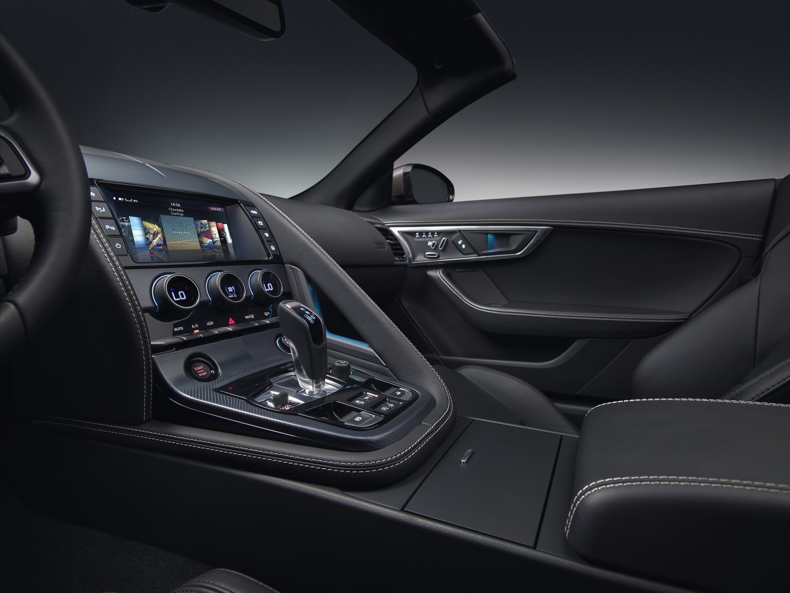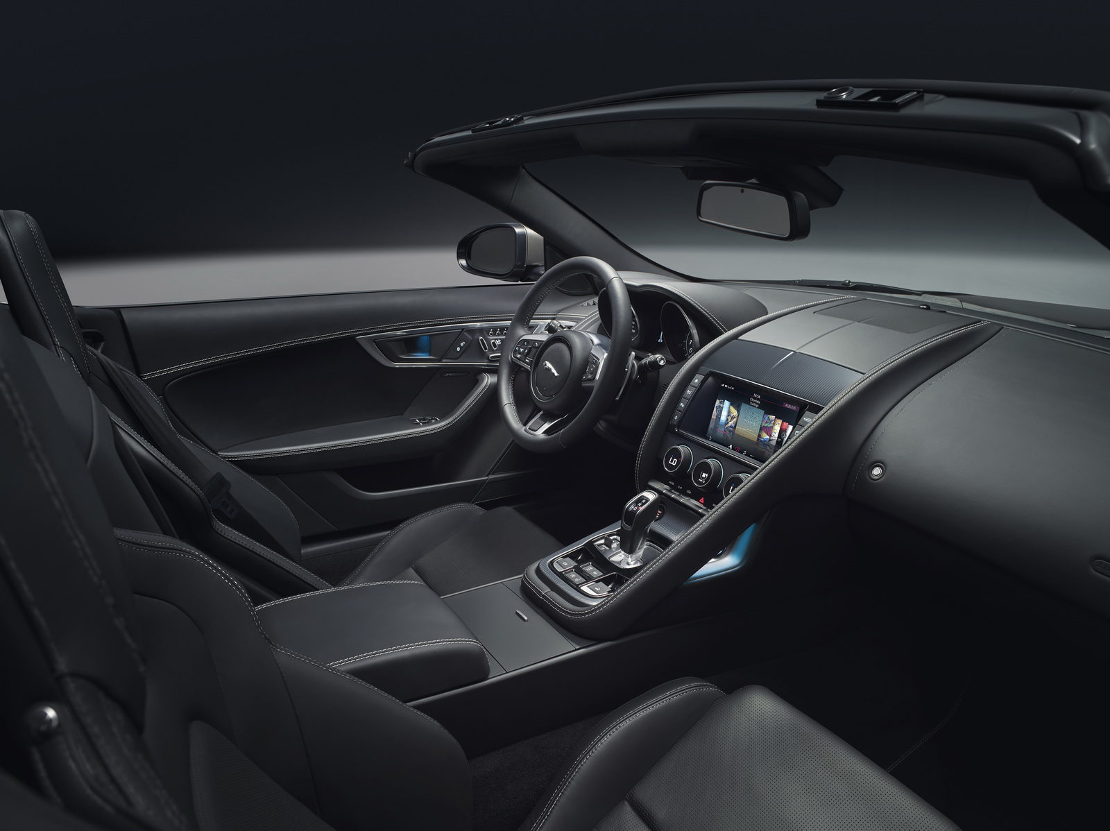Jaguar has also included the new ReRun app with the car, which was co-developed with GoPro and combines the video from an action camera of the brand with key performance data real-time, including speed, throttle position, gear selection, braking force and g force. The cabin is also hosting a pair of new, lightweight slimline seats, new chrome and aluminum trims and revised interior color schemes, including a Sierra Tan leather option.