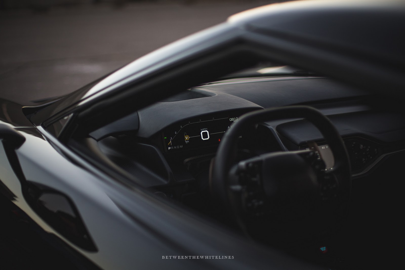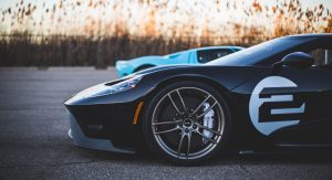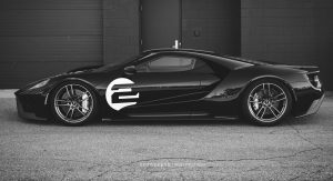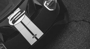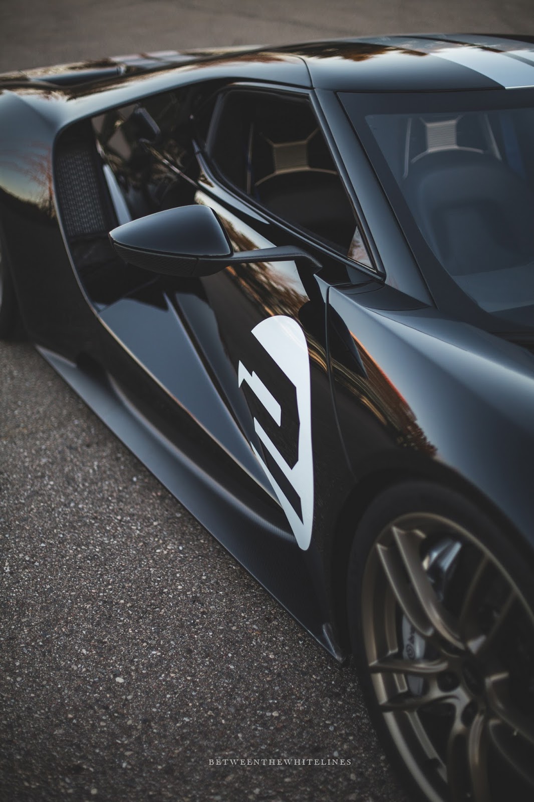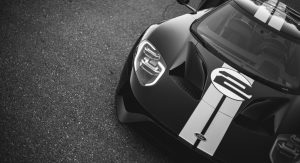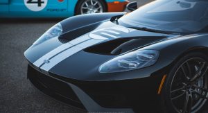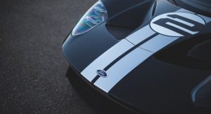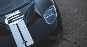 Speaking of special, what sets the Heritage Edition model apart from any regular Ford GT is the Shadow Black finish, which you can get in either gloss or matte, followed by the silver stripes, exposed carbon fiber package, Frozen White #2 hood & door graphics and 20″ gold satin forged aluminum wheels.