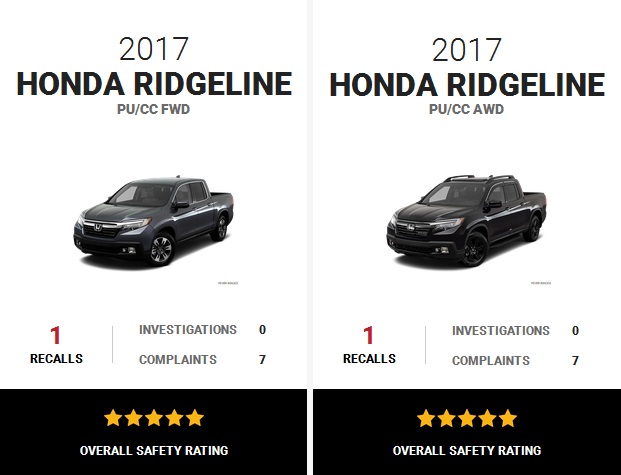 The 2017 Honda Ridgeline has been awarded with the highest possible safety rating from the US government, which runs the New Car Assessment Program (NCAP).