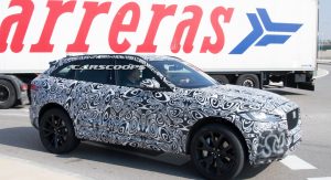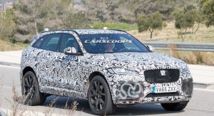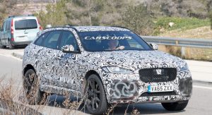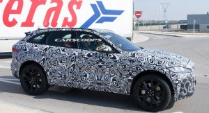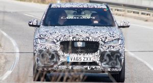 Unlike other F-Pace SVR prototypes, this one has quad-tailpipes and a more aggressive bumper, while riding on a set of large Y-spoke wheels. In other words, this is the most complete F-Pace SVR we’ve seen to date, despite the fact that it remains fully camouflaged.