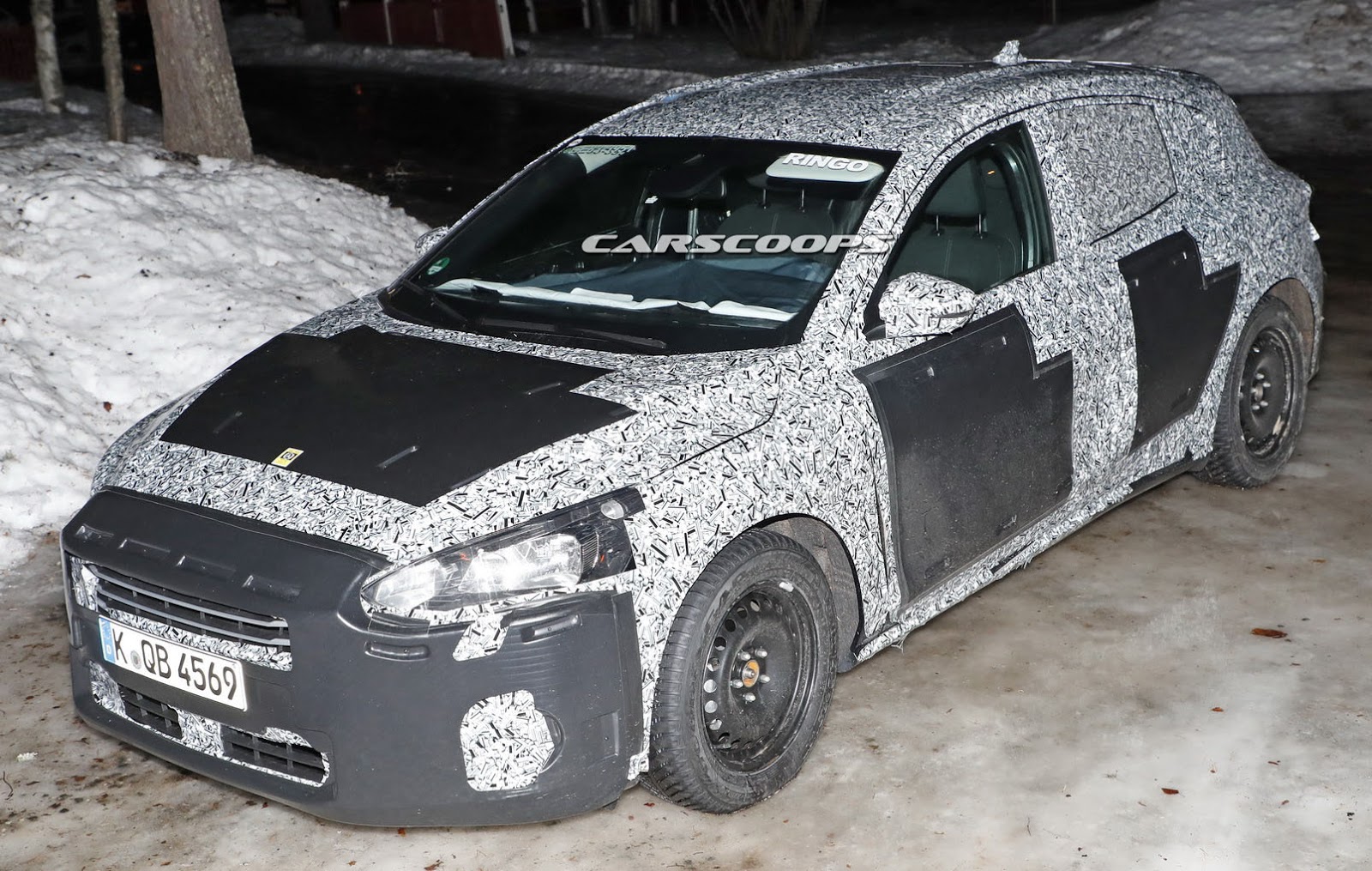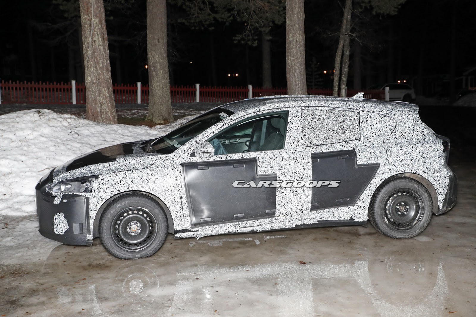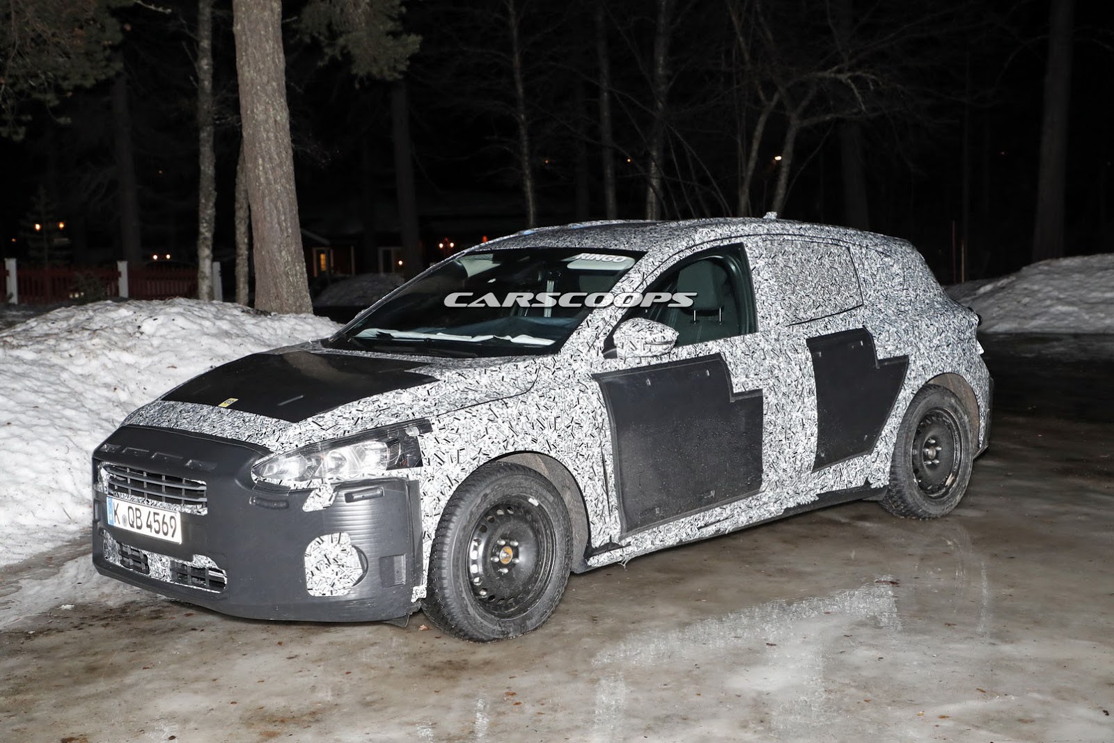 Ford’s next-generation Focus has been spied testing with its all-new body for the first time, bathed in thick black and white camouflage.