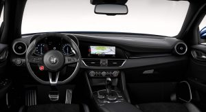 As for the range-topping Giulia Quadrifoglio, the model you’ll inevitable customize with the tool, seven different exterior paint options are available including Rosso Competizione Tri-Coat (the launch color) and our personal favorite, Montecarlo Blue Metallic.